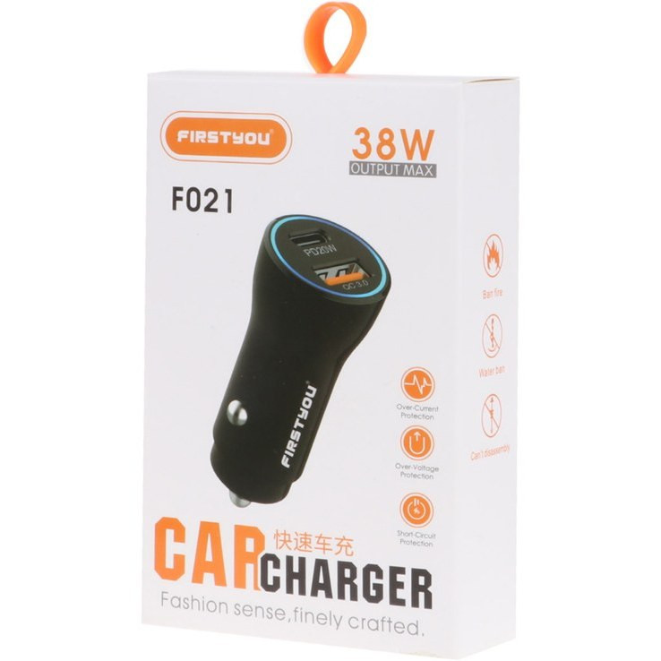 شارژر فندکی 2 پورت یک پورت PD فست Firstyou F021 38w