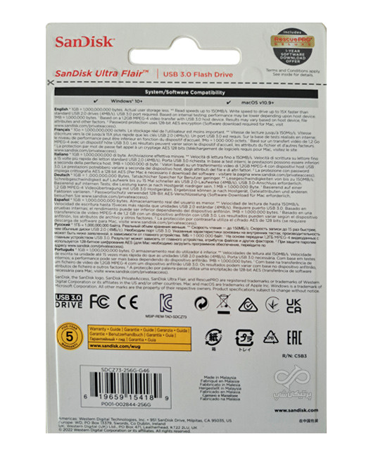 فلش مموری سن دیسک Ultra Flair CZ73 USB 3 ظرفیت 256 گیگابایت