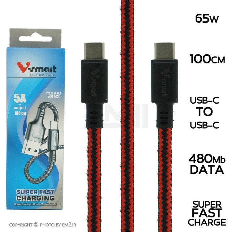 کابل 2 سر تایپ سی 65 وات کنفی وی اسمارت مدل VS-63