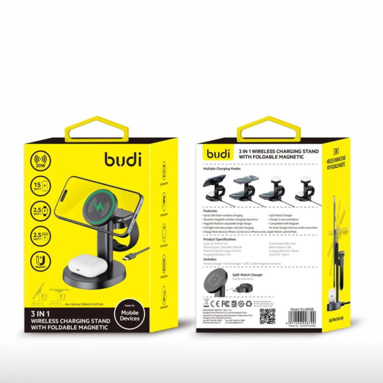 بودی از تولید کنندگان محصولات جانبی دیجیتال در سراسر جهان می باشد . با توجه به افزایش روز افزون افراد به کالاهای دیجیتال ، این برند گامی مؤثر در عرضه این مدل محصولات برداشته و با کیفیت هر چه تمام تر در جهت رشد و توسعه برنامه های خود برای تولید لوازم جانبی دیجیتال حرکت می کند . شارژر بی سیم سه کاره مغناطیسی Budi مدل WL4900B یکی از محصولات الکترونیکی این شرکت می باشد . این شارژر بی سیم دارای طراحی مدرن و مینیمالیستی است که به طور یکپارچه با هر فضایی ترکیب می شود. اندازه جمع و جورش آن را برای استفاده در خانه و محل کار ایده آل می کند . تجربه شارژ بیسیم MagSafe بدون درز با شارژر بی سیم سه کاره بودی ، بسیار لذت بخش خواهد بود . چراغ LED نشان دهنده شارژ ، بسیار مناسب و ایمن است و به راحتی گوشی ، واچ و ایر پاد خود را در هر جهتی شارژ کنید .