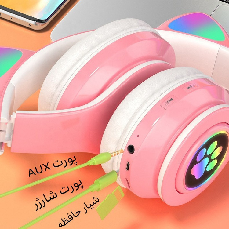 دارای LED نورانی روی گوشی های و روی گوش های گربه ای تغییر رنگ نورهای بکار رفته روی گوشی و گوش های گربه ای قابلیت تاشدن برای حجم کمتر قابلیت تنظیم اندازه سری هدفون قابلیت استفاده با سیم و بی سیم به وسیله جک ۳.۵ میلیمتری و یا بلوتوث قابلیت اتصال کارت حافظه میکرو SD استفاده برای بازی, مکالمه, ورزش و یا کلاس های آنلاین به وسیله اتصال به تبلت و گوشی و یا لپتاپ