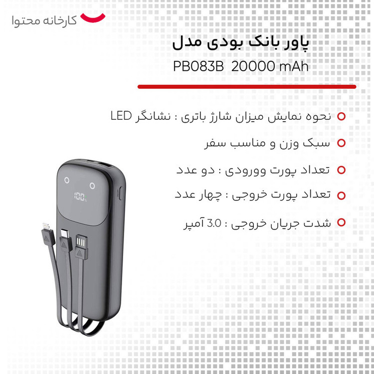 پاور بانک بودی مدل PB083B ظرفیت 20000 میلی آمپر ساعت