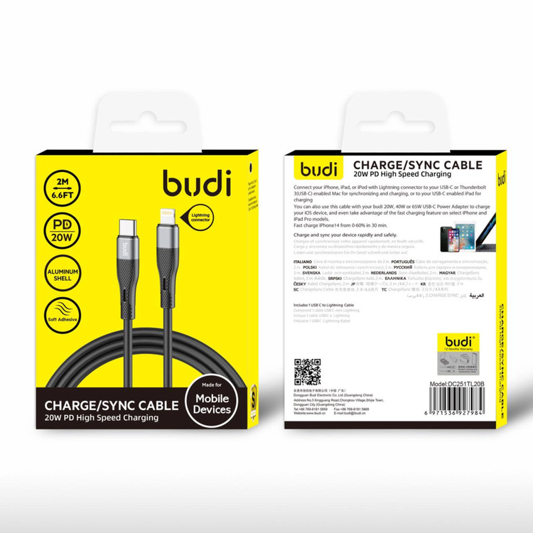 بودی از شرکت های معتبر در زمینه تولید لوازم جانبی کالای دیجیتال می باشد . فعالیت های چشمگیر این برند باعث افزایش سطح رضایت مندی خریداران شده است و توانسته کیفیت را به بهترین نحو ارائه دهد . کابل شارژ 20W وات بودی مدل DC251TL20B نیاز شما در تامین شارژ گوشی موبایل و دستگاه هایی که دارای خروجی لایتنینگ هستند را بر طرف می کند . iphone , ipad و یا ipod خود را به راحتی با این کابل شارژ که اتصال USB-C به لایتنینگ دارد شارژ کنید . همچنین می توانید از این کابل با آداپتور برق 20 واتی، 40 واتی یا 65 واتی که اتصال USB-C دارند ، برای شارژ استفاده کنید . جنس کابل شارژ بودی از روکش آلومینیومی می باشد و محافظ های سر کابل مانع پارگی ، کشیدگی و آسیب دیدن کابل می شود . از قابلیت شارژ سریع در مدل های منتخب آیفون و آیپد پرو بهره ببرید. با کابل شارژ بودی مدل DC251TL20B دستگاه خود را به سرعت و ایمن شارژ و همگام کنید.