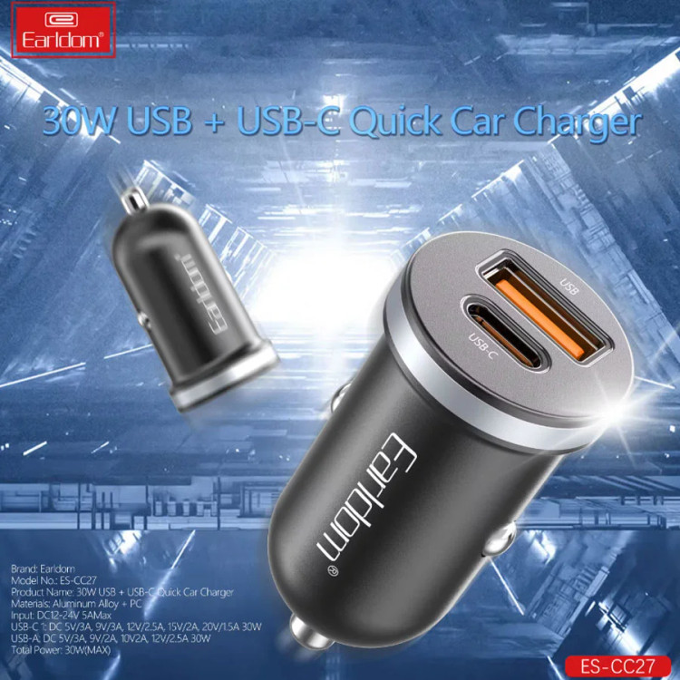 شارژر فندکی 30 وات ارلدام مدل Earldom CC27