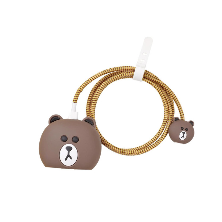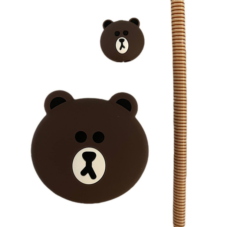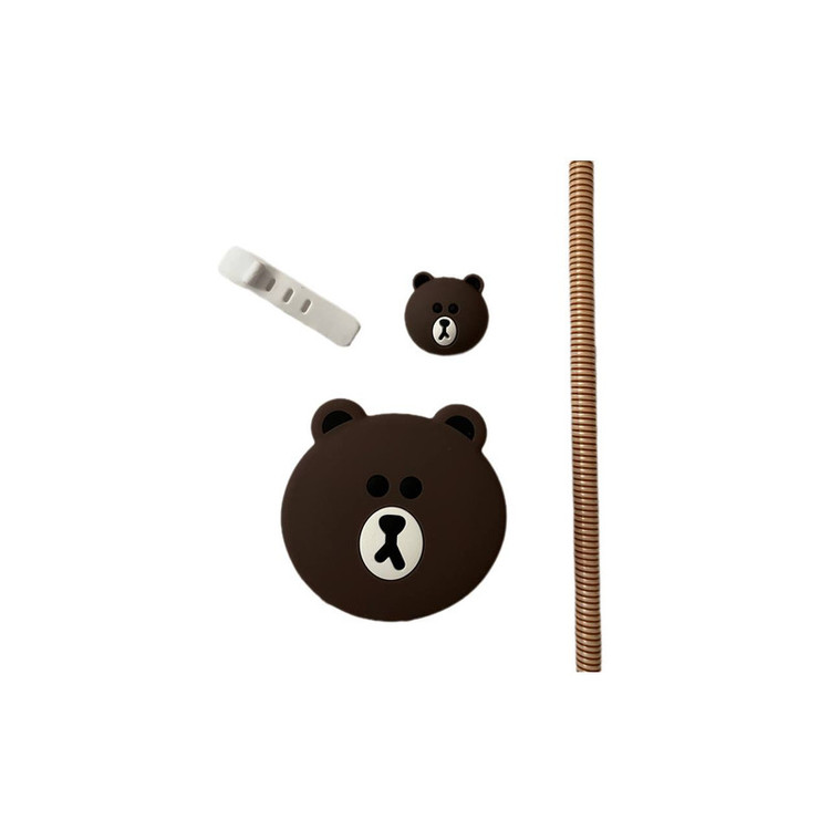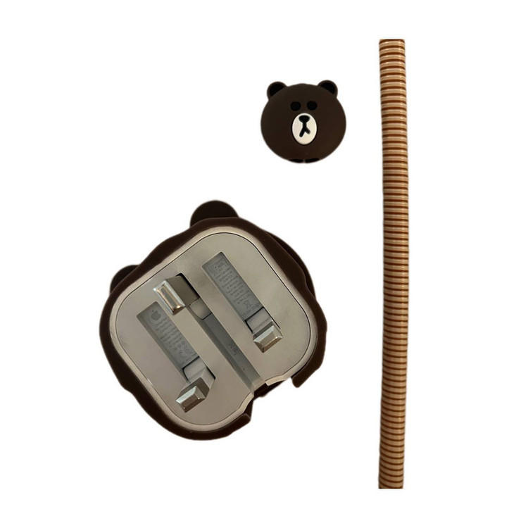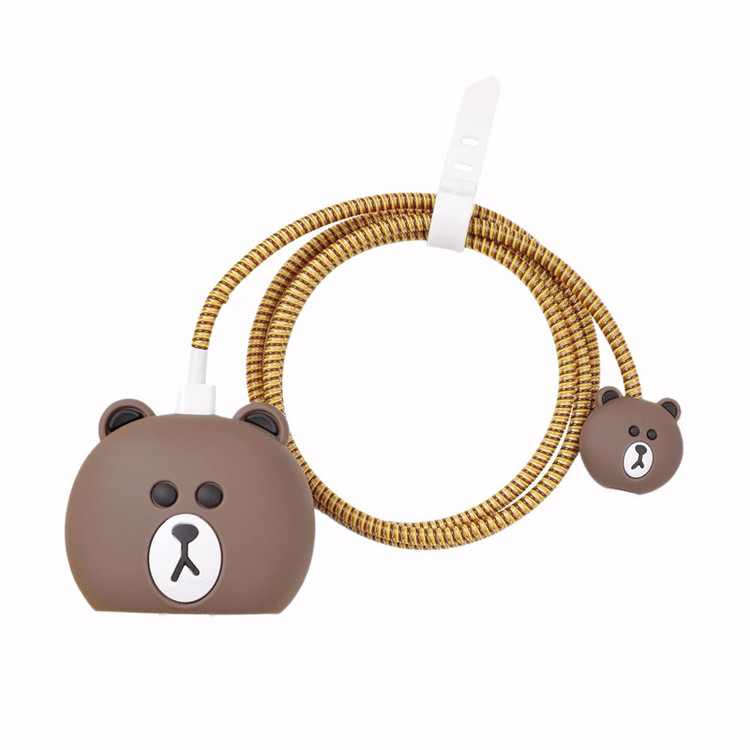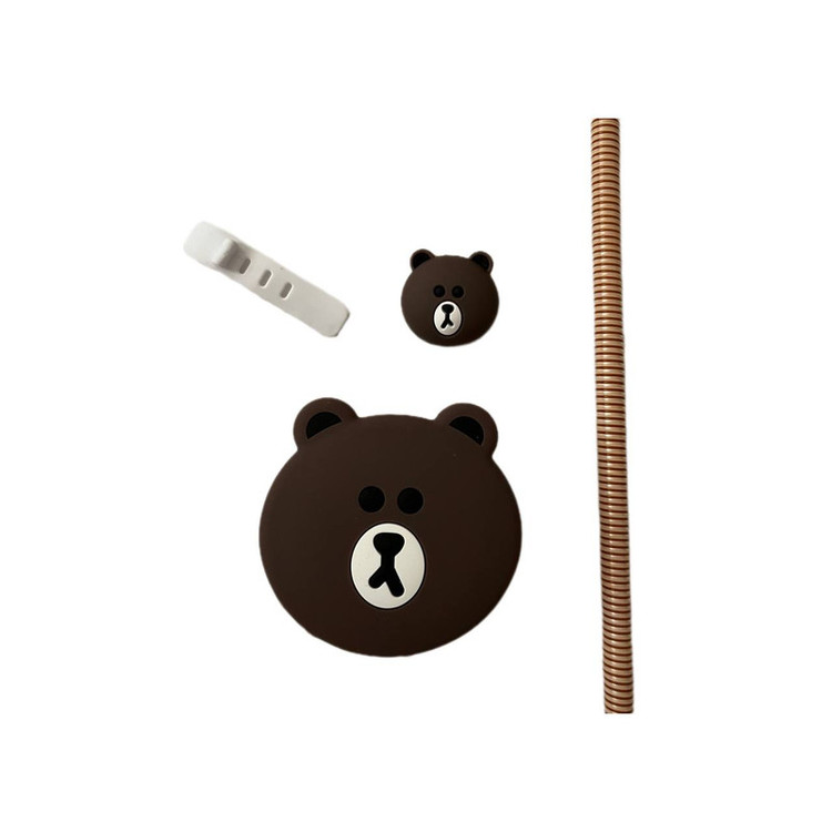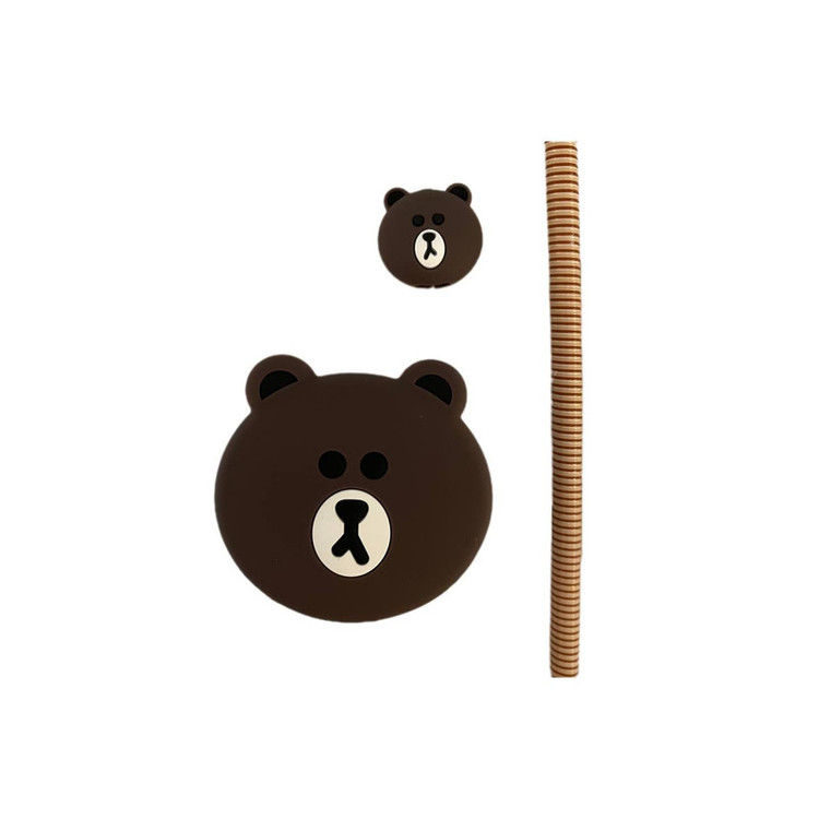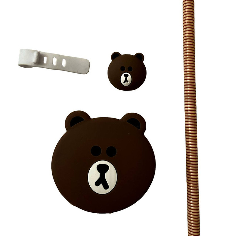 محافظ کابل فانتزی طرح تدی مدل Silicon به همراه محافظ شارژ دیواری مجموعه 4 عددی