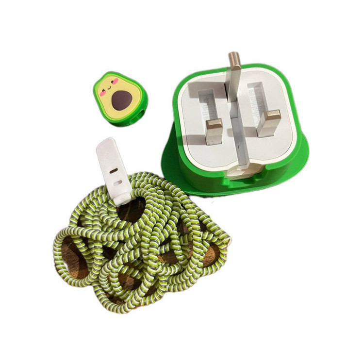 محافظ کابل طرح آواکادو مدل Silicon به همراه محافظ شارژ دیواری مجموعه چهار عددی